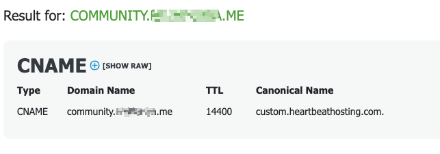 If you do not see the record for your hostname, please contact your domain host with help to update the record. Heartbeat Support cannot see or access your DNS settings, only your domain host can.