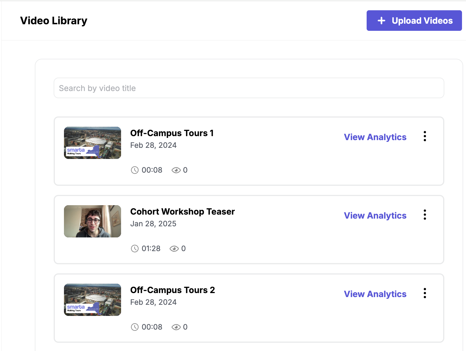 3. Once selected, the video will start uploading. Depending on your internet connection and the size of the video, this may take some time. Once the upload is complete, the video will appear on your list.