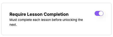 You can also make lessons required which will result in each lesson needing to be marked as Complete before the next lesson is unlocked. Without this toggle on, members are able to jump between lessons without completing them.