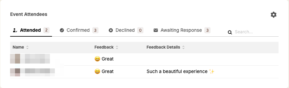 From here, scroll down to your attendee list and you'll be able to see a Feedback column as well as any comments members left under Feedback Details.