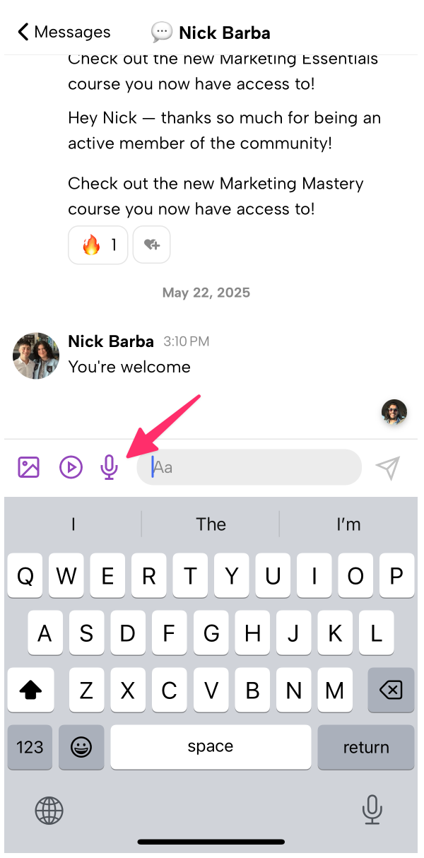 You’ll see your keyboard pop up, and just to the left of the text field is a little microphone icon.Tap the microphone icon to begin recording