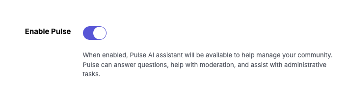 Toggle Pulse ON/OFF to control whether the AI assistant is available in your community admin dashboard.