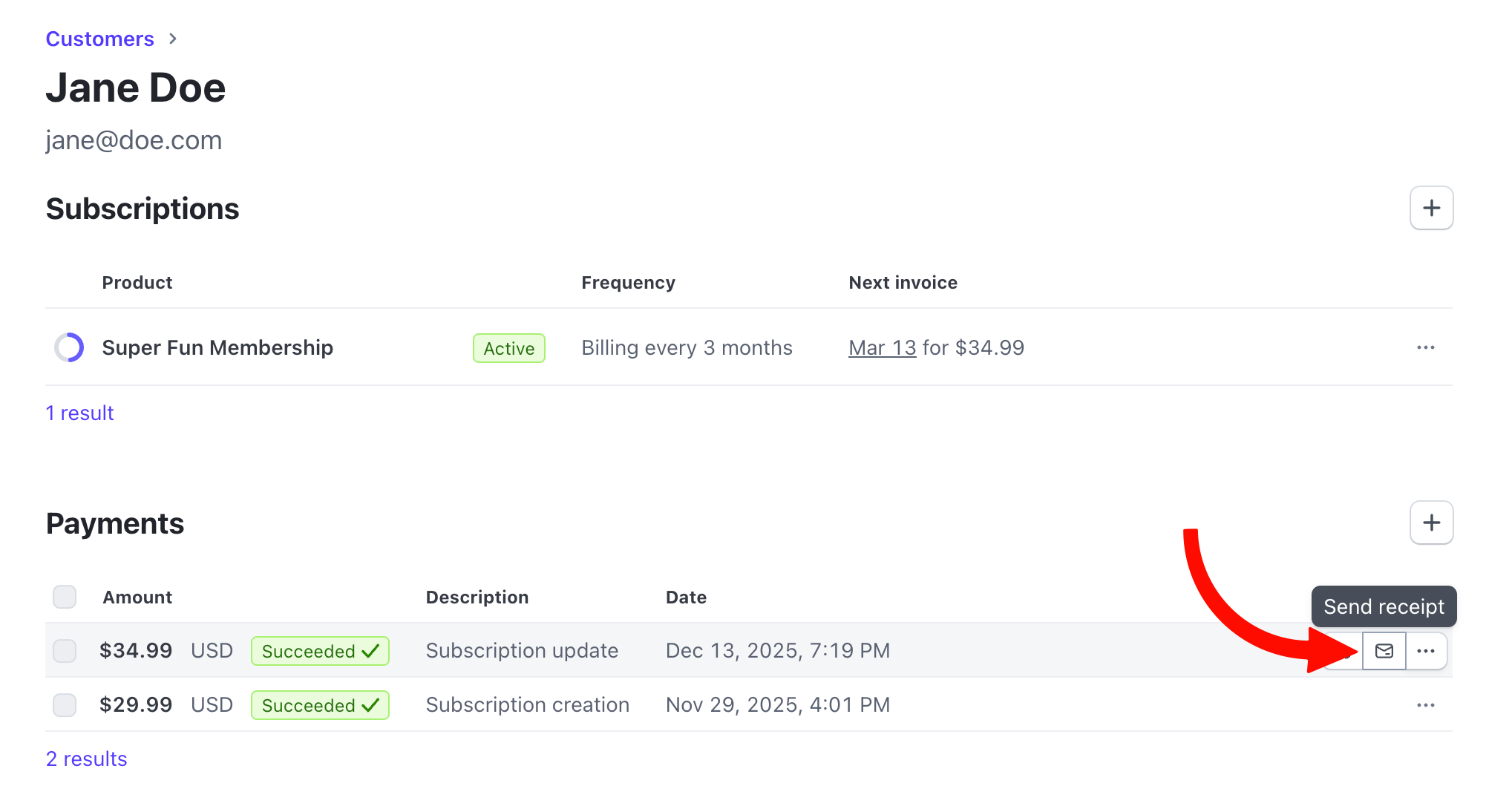 As a community admin, you can send receipt copies directly to members who request them. Here is how: